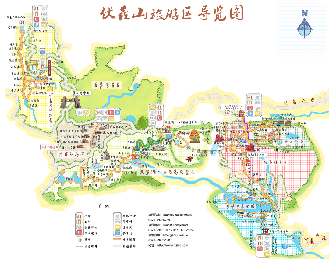 伏羲山旅游度假区作为国家4A级旅游景区,属嵩山东北向余脉,总面积 57 平方千米,集红石林丹霞地貌、伏羲大峡谷等自然景观与伏羲文化、红色文化等人文景观于一体,核心景区包括凤泉湖、小马高原、红石林、云上牧场、伏羲山大峡谷、奇梦四季水城。